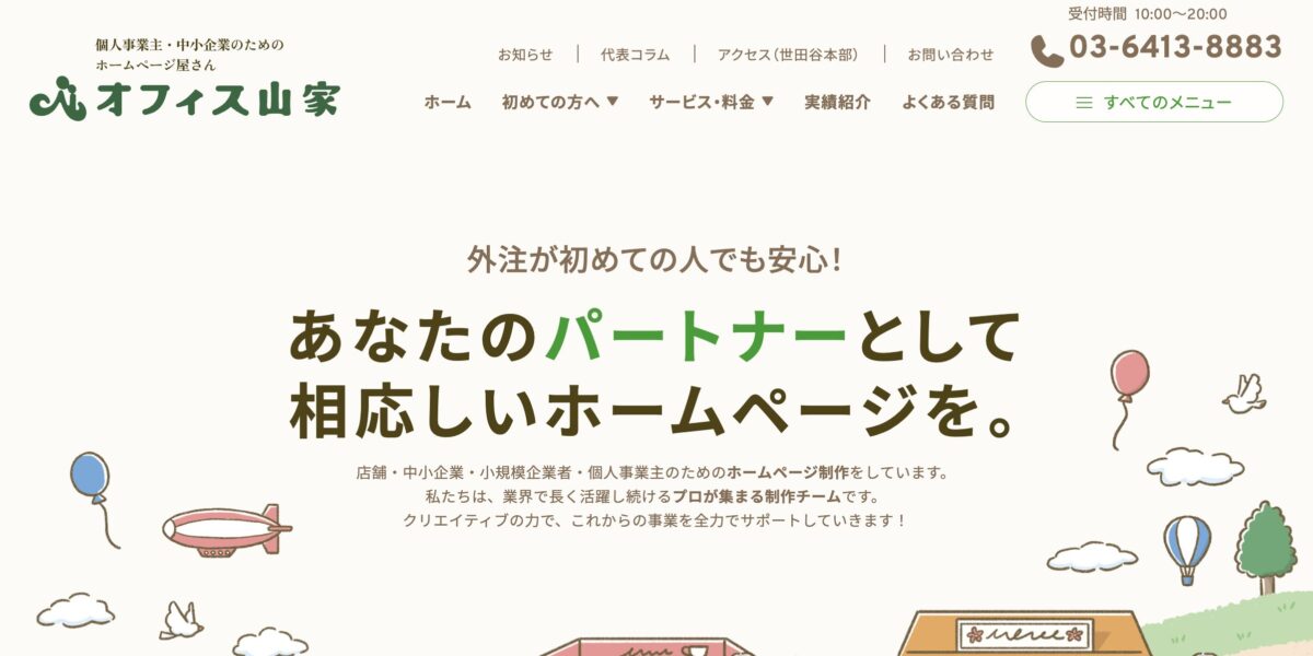 オフィス山家は、東京都世田谷を拠点に、個人事業主・中小企業向けのホームページ制作を行う制作チームです。